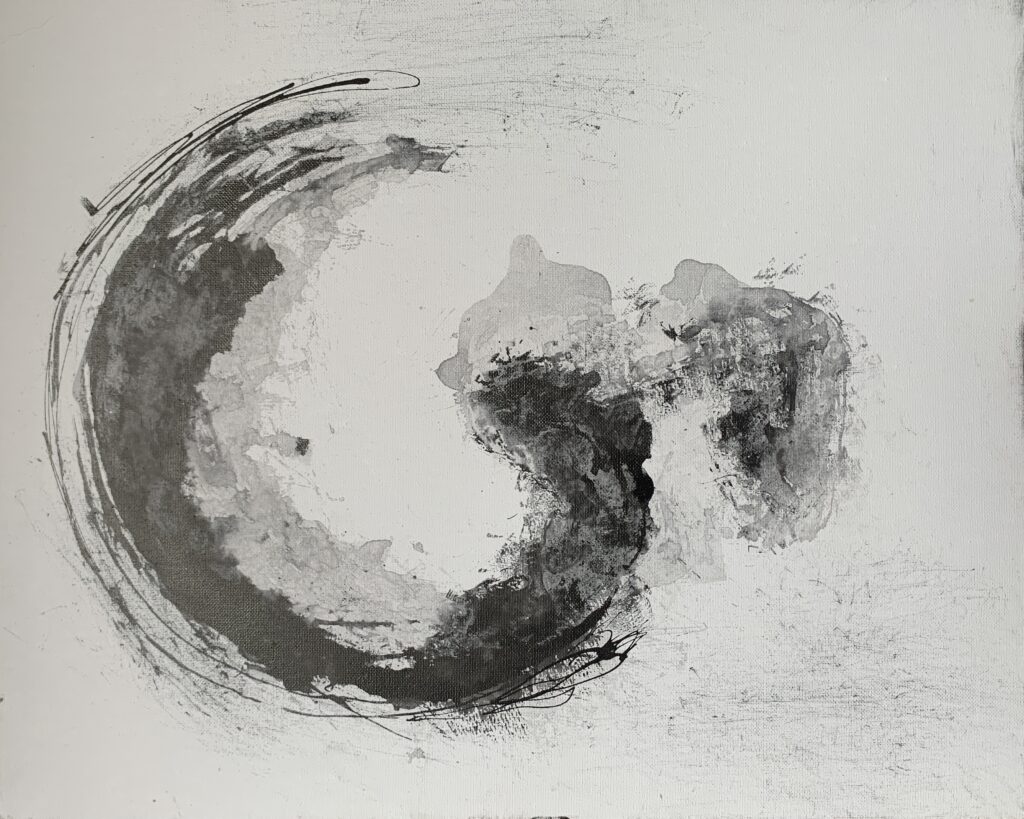 ‹ Return to Cuddle_ Sumi-ink art, Bokusho-style, Handmade Brush from Nature on Canvas_ Height 40.5cm x Wide 51cm_ €3500