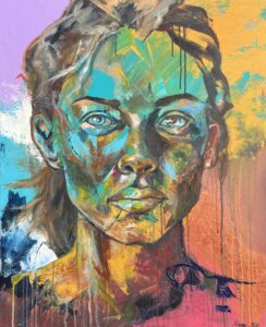 The intuitive color choises diverse the spirit of the art work. On a flat canvas the colors speak