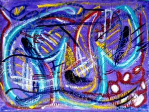 Characterized by imaginative colors and intricate textures, his paintings feature vibrant hues blended directly onto the canvas, predominantly in acrylic and gel mediums, but sometimes incorporating oil pastels and watercolors. Savvye’s tactile approach employs silicone tools and palette knives to create textures that immerse viewers in a vivid world of color and emotion. Recently, Savvye’s experimentation has taken him to working in oils with acrylic underpainting. “Anything that shows my passion and depth is fair game,” he says.